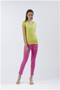 Fresh and light this t-shirt is made of viscose jersey. v neck and wing sleeves. gold logo plaques decorate the shoulders.