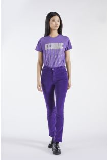 High-waisted slim fit trousers in soft embossed velvet with a precious painted button
