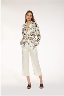 Fine viscose satin culotte trousers decorated with contrasting satin trims