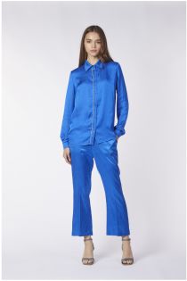 viscose satin shirt with embroidery sapphire