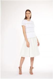 Viscose yarn short-sleeved sweater with particular feature of wave ribbing