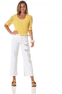 VISCOSE TOP WITH LACE SLEEVES