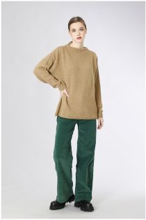 Comfortable stretch yarn sweater with volcano neck and long sleeves.