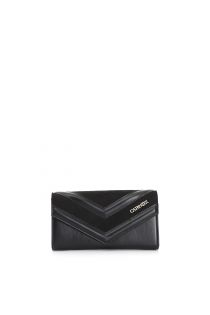 wallet with flap with embossed stripe applications black