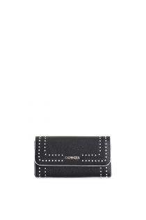 Wallet with flap with two-tone mini rivet application. metal logo.
