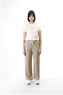Palazzo fit sports trousers with drawstring waist. made from a viscose and lurex sweatshirt with a warm feel. ultra versatile perfect for updating your daily wardrobe.