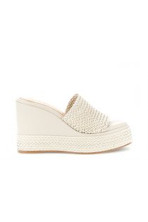 wedge-bottom slipper sandals in woven synthetic leather with a woven effect beige