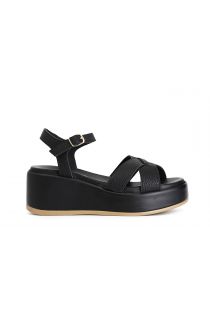 wedge crossover sandals black