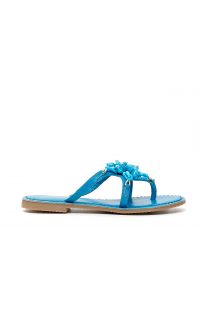 Sandals with medium high wedge that matches the upper, with contrasting double welt and white tread. The fusbett brings comfort to the collection, with a band decorated with shiny rhinestones