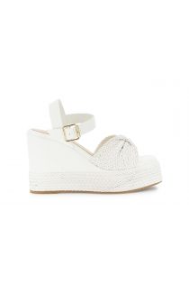 Wedge sandals with a woven leather effect. braided strap and ankle strap. a 10.2 cm heel and 3.3 cm platform create a comfortable bold summer look perfect for adding a touch of style to any outfit.