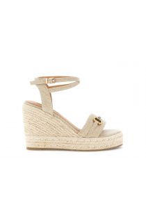 Wedge sandals in woven rope featuring a soft upper with a front band and an adjustable ankle strap. a 2 cm platform and 8 cm sole. decorative detailing on the front a comfortable footbed and a stable sole designed to lightly accompany your movements. ideal for everyday elegance with a natural touch.