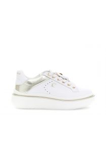 white leather lace-up sneakers with inserts white/gold