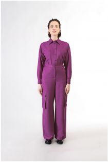 Super wide fit trousers with large pockets and elasticated waist in the back to increase comfort. made of fabric with a grisaille construction. wardrobe must-have to wear on the day with a matching shirt or sweater.