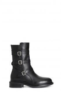 Women's leather ankle boot with 3 ornamental buckles. the heel is 30 mm high.