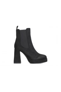 Women's ankle boots in microfibre with side elastic bands to make it easier to put on. 22 mm platform and 100 mm high heel. rounded shape. the insole is in leather. all this gives balance between height beauty and comfort.