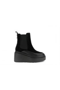 Women's suede ankle boot with side elastics. 70 mm heel and 30 mm platform. the insole is in leather.