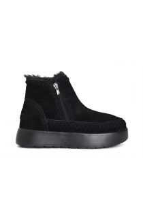 Women's ankle boot with raised sole stitching and double zip. suede upper and synthetic fur lining.