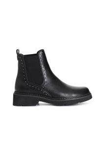 Women's ankle boot in imitation leather with elastic on the side part of the upper to facilitate the fit. all enriched by chromed micro-studs. the insole is in leather.