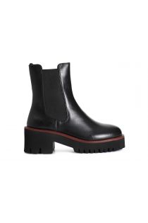 Women's leather ankle boot with side elastics and colored welt. the insole is in leather. 60 mm high tank sole.