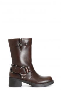 Women's ankle boot with spur and buckles. 47 mm high heel. the insole is in leather. with a strong design they give a bold and practical look.