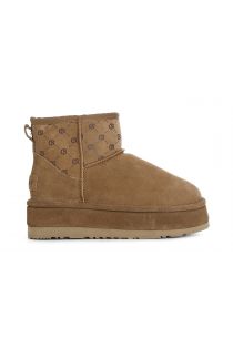 Women's suede ankle boot with logo decoration. the lining and insole are made of synthetic fur. warm and very comfortable shoe. ideal for cold winter days.