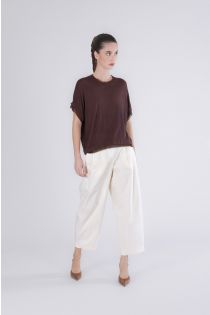 Women's viscose sweater with short batwing sleeves lightweight and flowing. raw-cut georgette trim on the neckline and cuffs for a modern and elegant style. the model is 175 cm tall and wears size s. comfort fit.
