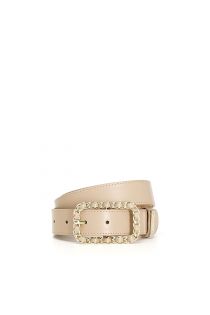 Women’s belt with O-ring buckle joined by synthetic threading