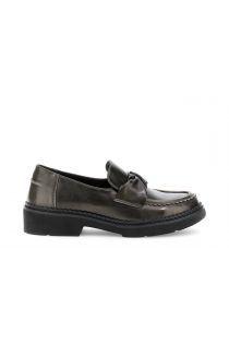 Women's brushed faux leather loafers with a metal accessory on the front. Leather insole and 3.5 cm heel. Classic style with a trendy twist.