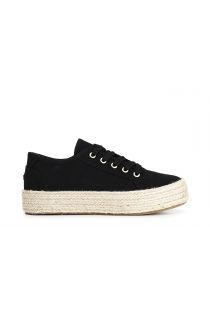 Women’s fabric lace-up shoes. 30 mm-high cord padded sole.