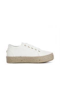 Women’s fabric lace-up shoes. 30 mm-high cord padded sole.