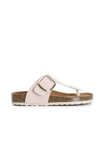 Women’s patent leather flip-flop sandals with buckle. comfortable fussbett.