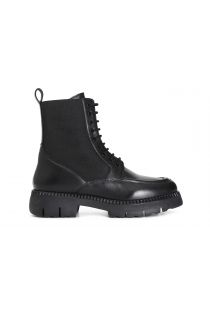 women's leather ankle boot fastened with elastic black