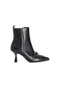 Women's leather ankle boot with fringes and horsebit. parade shape shoe. 70mm heel. the insole is in leather.