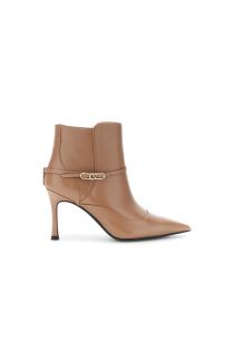 Women's leather ankle boot with personalized buckle and zip on the inside. fine heel 87 mm high. slim shape. the insole is in leather. shoe with an elegant and feminine style.