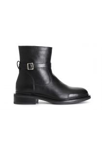 Women's leather ankle boot with strap and buckle. the heel is 30 mm high.