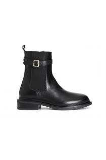 Women's leather ankle boot with zip inside the shoe. elastic strap and buckle are decorated. the heel is 30 mm high.