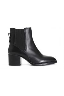 women's leather ankle boot with elastic black