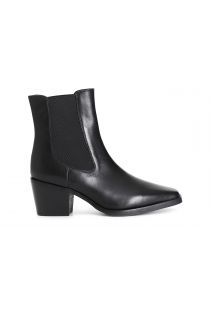 Women's leather ankle boot with side elastics. 55 mm high heel. the insole is in leather. a texan style shoe with a bold character that will guarantee an extra edge to your looks. 55 heel. leather insole.