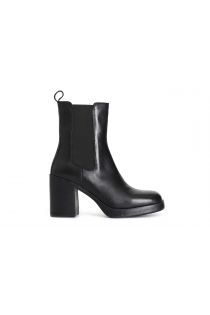 Women's leather ankle boot with elastic bands to facilitate the fit. 85mm high heel. the insole is in leather.