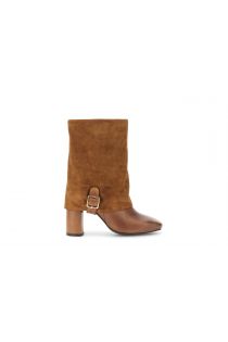Ankle boot in nappa and suede with maxi turn-up and buckle. iconic model with a slightly rounded shape for an innovative and refined style. 80mm high heel. the insole is leather.