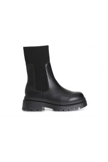 women's leather ankle boot with stretch fabric black