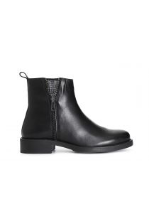Women's leather ankle boot with ornamental zip and decorative rhinestones. the heel is 30 mm high.