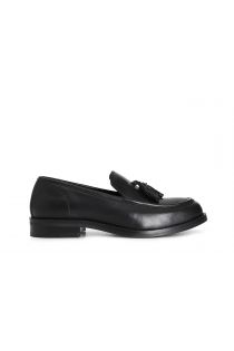 Women's leather moccasin with tassels. lining and insole are in leather. 25 mm high heel.