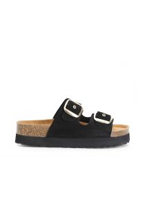 Women's leather slipper with double buckle. comfortable 4 cm high leather fussbett.