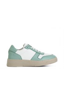 Women’s two-tone leather lace-up sneakers. leather insole.