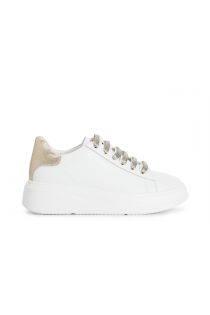 Women's sneakers in covered leather with glitter effect insert. the sole is 4 cm high.