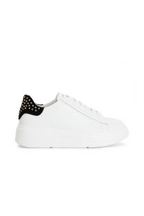 women's leather sneakers with heel applications white/black