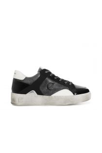 Women's sneakers in leather and suede with patent and metallic effect inserts. side embossed logo with cafènoir monophragm. shoe with a rounded shape. lace closure. internal footbed. 30mm cassette sole.