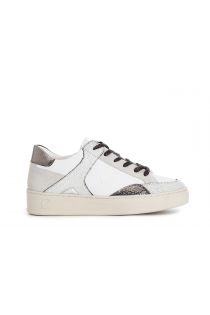 Women's sneakers in leather and suede with patent and metallic effect inserts. side embossed logo with cafènoir monophragm. shoe with a rounded shape. lace closure. internal footbed. 30mm cassette sole.