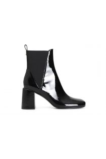 Women's ankle boot with naplak leather elastic. customized stud on the back. 80 mm high banded heel. the insole is in leather. ideal in combination with multiple looks from morning to evening.
